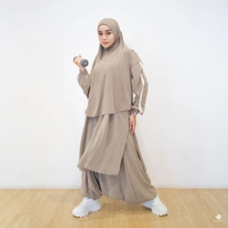 - Terdapat karet di bagian tangan sehingga menutupi aurat bagian lengan
